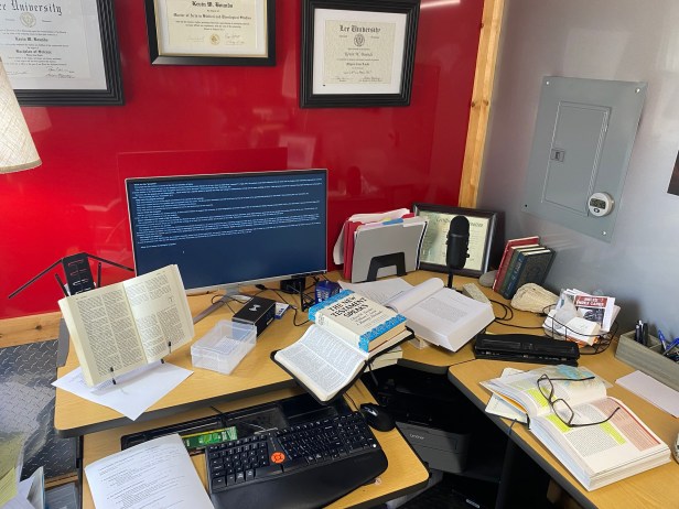I am doing what I’ve always wanted to do with my life. I have one foot in the church world and the other in the academy…Why should I not be satisfied with where I am? I even have a cabin in the woods as a writing shed! God has blessed me with so much that I’ve taken for granted.